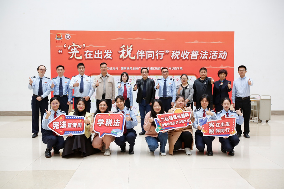 治国凭圭臬,安邦靠准绳。2023年12月4日,是第十个国家宪法日,12月1日至7日为“宪法宣传周”。为大力弘扬宪法精神,建设社会主义法治文化,我校bv伟德国际1946联合国家税务总局广州市增城区税务局共同举办“‘宪’在出发税伴同行”跨校区税收普法活动。活动于广州校区图书馆报告厅线上线下同步举行,国家税务总局广州市增城区税务局党委委员、副局长黄莹莹、二级高级主办钟健民、增城区税务局“远方田野”乐队、税务青年代表、bv伟德国际1946主持工作副院长刘善球、bv伟德国际1946党委副书记、副院长陈洋广,bv伟德国际1946副院长周书域、bv伟德国际1946税务系主任张翠凤、税务系副主任李志凤以及bv伟德国际1946广州、肇庆校区师生代表参加了本次活动。