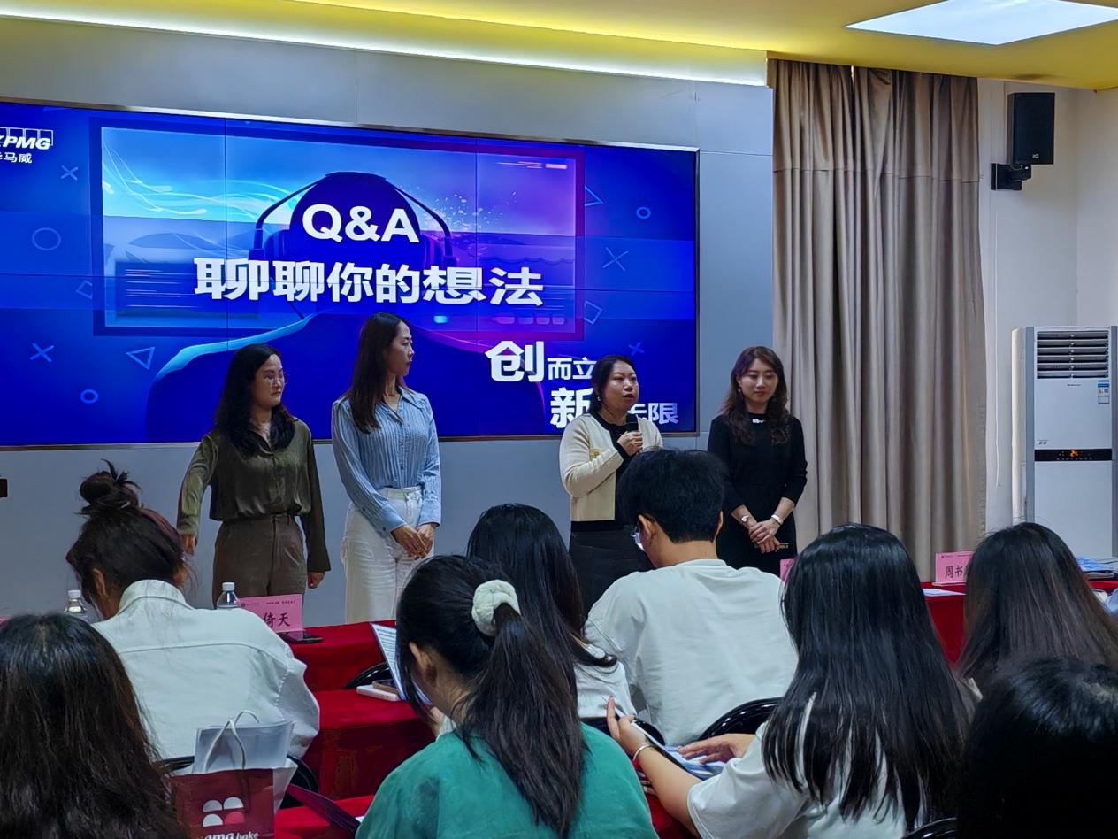 宣讲团为同学们讲解了公司实习、培训方面的详情,在毕马威交付中心,有覆盖多维度的培训体系、公开透明的晋升机制、平等交流的对话文化以及丰富多彩的活动或社会公益项目,大家可以通过多方面的学习成就更好的自己。