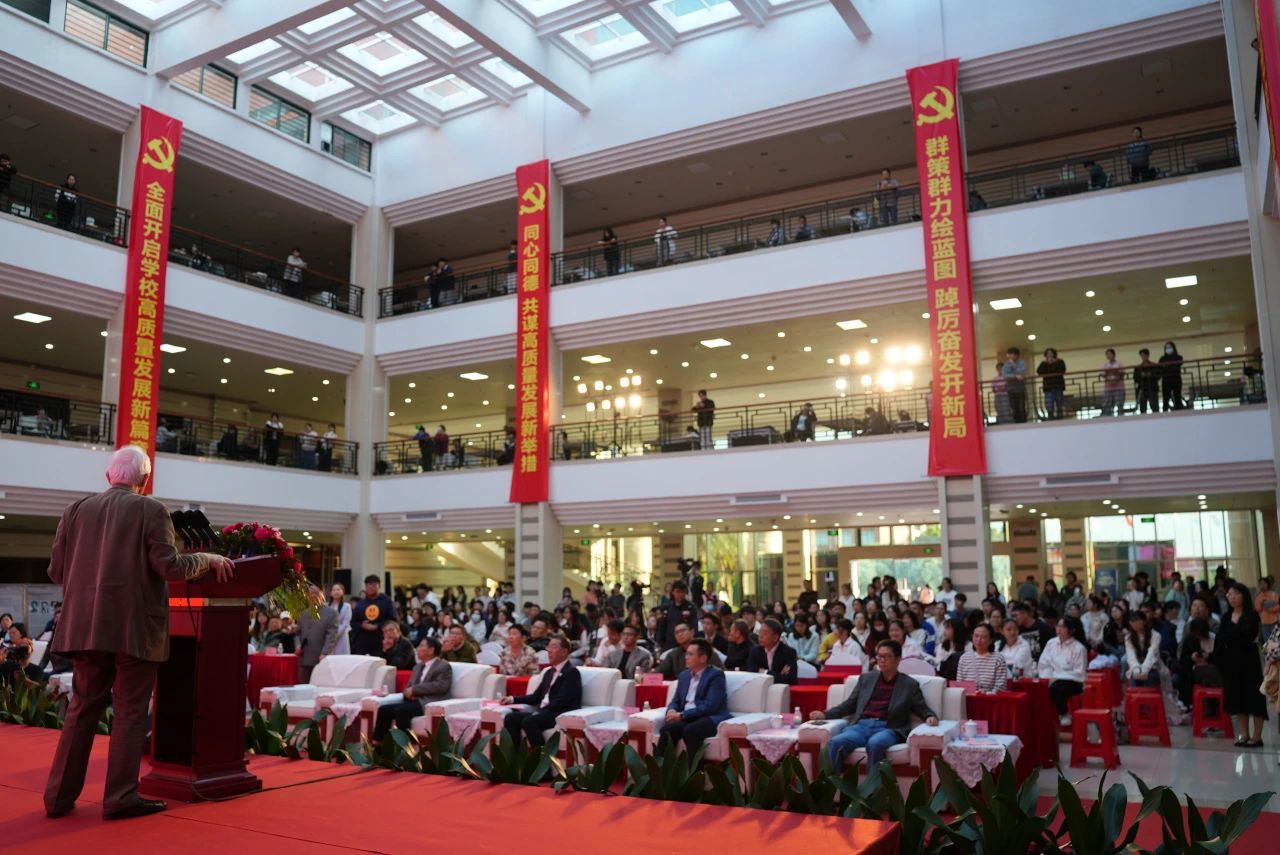 学校党委书记陈玉欢在致辞中指出,自2019年Lehn教授首次受邀来访华商学院,给广大学子授课并出任我校荣誉校长以来,一直默默关注与支持着学校的发展。在我校建校15周年校庆之际,Lehn教授在遥远的法国通过视频的方式向我们发来了真挚的祝福和殷切的期望,并高度赞扬我校是一所充满活力和潜力的学校。陈书记指出,在当今全球化的浪潮下,学术交流成为了推动学校发展的强劲动力。今年是华商学院迎二十周年校庆、迎本科教学工作合格评估开局起步之年,Lehn教授的到来,对学校新征程新发展具有特殊重要意义,象征着华商学院积极拥抱世界、不断追求卓越的决心。希望全校上下以此次讲座为契机,进一步提升教学科研能力,向着更高的学术山峰攀登,向着更广阔的国际舞台迈进,不断开创办学事业的新局面,共同书写华商学院更加辉煌的明天,为培养更多具有国际视野和创新能力的高素质人才作出新的更大贡献。