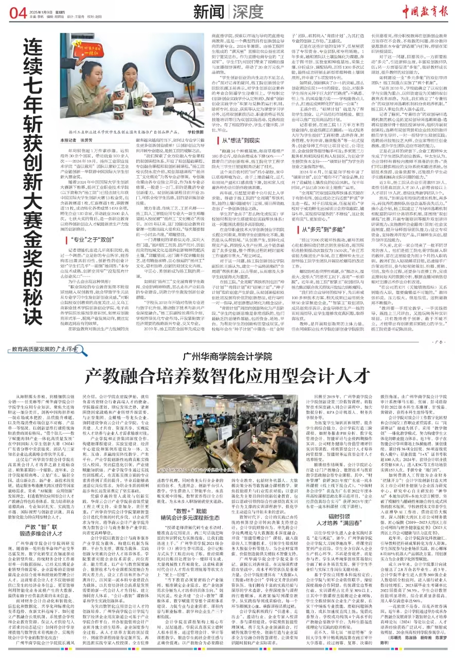 1月9日,《中国教育报》第四版显著位置刊发了《bv伟德国际1946产教融合培养数智化应用型会计人才》一文,这一成果登上权威教育媒体,标志着bv伟德国际1946在探索数智化应用型会计人才培养路径上获得广泛认可。