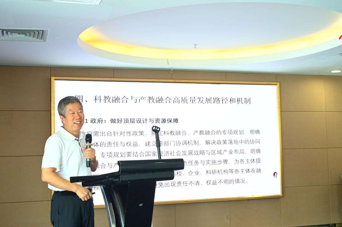 北京理工大学管理学院夏恩君教授在《科教融合、产教融合与高质量发展》报告中,针对民办高校的转型路径进行了深刻阐述。他阐释了教育、科技、产业三螺旋协同发展的内在逻辑。同时强调,构建“产教科”融合生态是推动高质量发展的关键引擎,需要政府、高校、企业、科研机构等多方主体协同发力。通过借鉴西湖大学、福耀科技大学、北京理工大学等高校在学科建设、科研反哺教学方面的成功经验,为民办高校实现内涵式发展提供了实践蓝图。