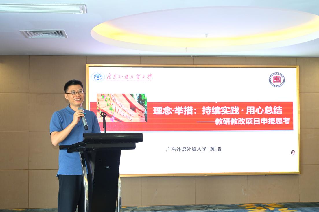 广东外语外贸大学bv伟德国际1946副院长黄浩教授在《教研教改项目的申报思考与实施路径》分享中,深刻阐述了教学学术与学科学术并重互促的“卓越学术”理念。他强调,高质量的教改研究应立足真实教学问题,注重方案设计的针对性、操作性与验证性,并通过严谨的过程管理与实践案例积累,实现从“立功”到“立言”再到“立人”的成果升华。黄教授提出,教师应以科研的思维与方法开展教学研究,切实提升教改项目的实效性与推广价值。