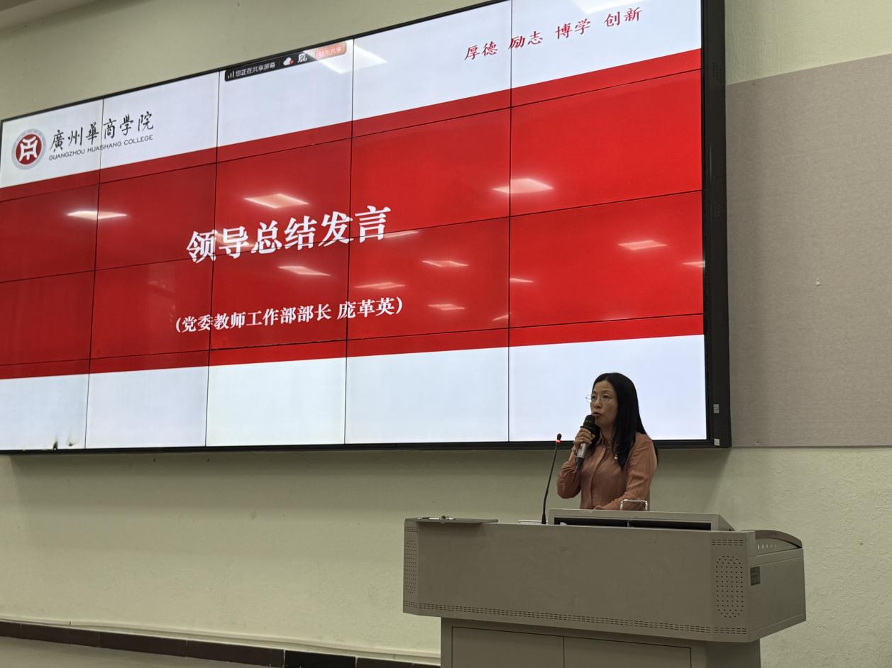 最后,党委教师工作部部长庞革英作培训总结。她指出,陈岸涛教授的讲座,是从高等教育发展的大背景出发,然后结合他自身的体会,运用了大量的正反面的案例,深入浅出地阐述了新时代加强师德师风建设的重大意义和核心要义,还有实践的路径,此次培训让我们深受教育和启发。