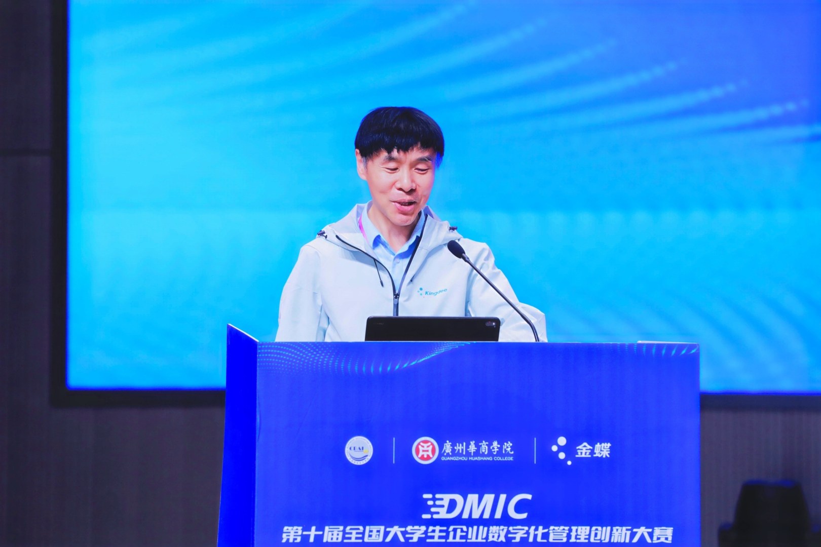 金蝶软件(中国)有限公司市场中心副总裁陈跃在发言中表示,在数据与AI驱动的新生产力时代,金蝶坚持“AI优先”战略,将服务头部企业的实战经验融入赛事场景。通过搭建连接真实商业环境与高校教学的桥梁,致力于让学生在大赛中应对产业实际挑战中锤炼数字化能力,为未来培养兼具管理与技术视野的复合型人才。