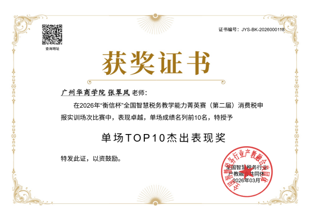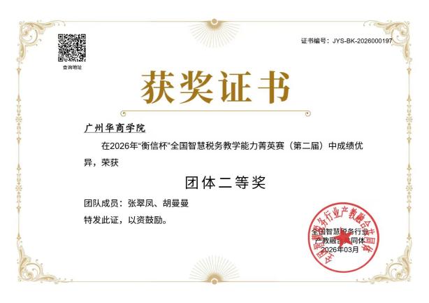 本次竞赛荣誉的取得,不仅是张翠凤教授、胡曼曼老师个人潜心教研、刻苦备赛的成果,更是我校深耕智慧税务教学领域、重视师资队伍建设、推进教学改革与产教融合的有力体现。一直以来,我校始终聚焦财经税务领域前沿发展方向,以提升教师教学能力为核心,以赛促研、以研促教,不断优化专业教学体系,创新教学方法,着力打造一支兼具理论素养与实务能力的高素质专业化师资队伍,为培养复合型、应用型税务专业人才筑牢根基。