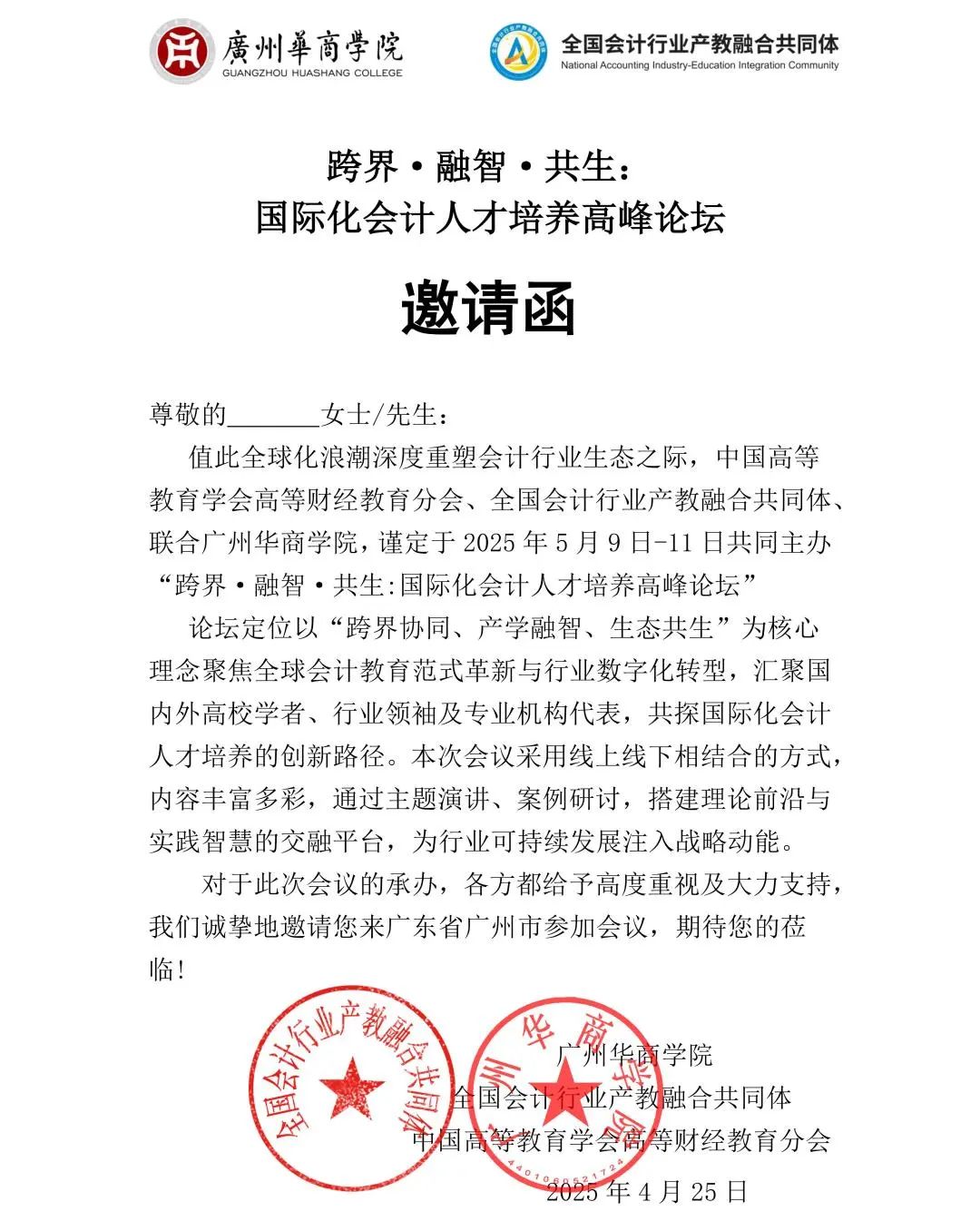 会议邀请 | 跨界·融智·共生:国际化会计人才培养高峰论坛