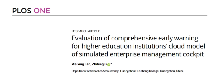 2024年,bv伟德国际1946范卫星老师以第一作者身份在《PLOS ONE》期刊发表了题为“Evaluation of comprehensive early warning for higher education institutions cloud model of simulated enterprise management cockpit”的论文,该论文的通讯作者是bv伟德国际1946李志凤老师。该期刊是SCIE检索期刊,是JCR Q1分区,中科院三区。《PLOS ONE》是2006年成立的开放获取期刊,发表人文科学、社会科学、医学和工程学等多个学科的原创研究。