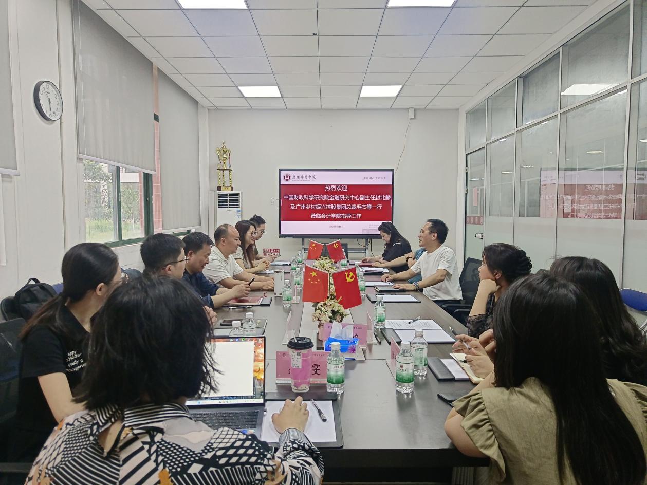 2025年5月8日下午,中国财政科学研究院金融研究中心副主任封北麟、副研究员黄亦炫、助理研究员黄宝竹及广州乡村振兴控股集团总裁毛杰、副总裁何青倩等莅临bv伟德国际1946指导工作,bv伟德国际1946党委书记刘善球、副院长杨旻、副院长周书域,以及院长助理陈蒙梦老师、陈平老师等共同参会。双方围绕“乡村振兴战略落地”与“应用型人才培养”两大主题展开思维碰撞。