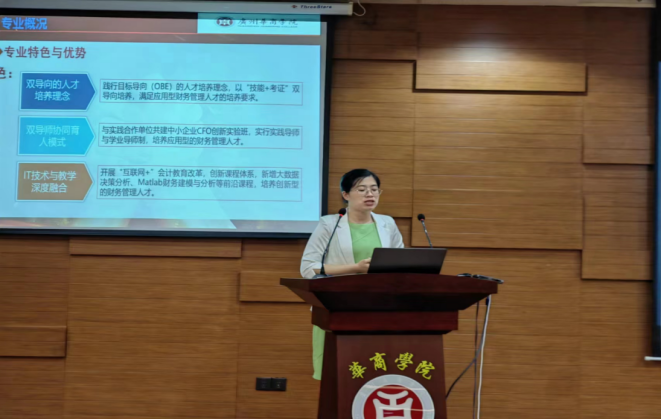 伟德国际victor1946杨俏文副教授以“财务管理省级一流专业建设”为主题进行了经验分享,她先介绍了财务管理专业概况,分别从专业定位、专业建设历史沿革、专业特色与优势等方面进行说明;其次,从财务管理专业建设举措及成效进行了经验分享,展示了教改项目、教研立项、科研立项、课程建设、实践与实验教学等丰富成果;最后,她对本校专业建设的下一步建设举措进行强调,认为对于会计学省级一流专业建设应进一步优化人才培养方案、深化创新协同育人模式并扩大专业社会服务的规模。