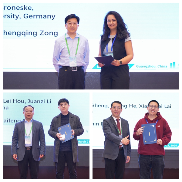 3月22日大会开幕,广东财经大学于海峰校长代表主办方致辞,对出席本次会议的各位领导、专家和学者致以热烈欢迎,于校长表示,自然语言处理作为人工智能领域的重要分支之一,具有广泛的应用前景和深远的社会影响,期待通过本次大会搭建的学术交流平台,与会专家能深入探讨学科前沿,凝聚智慧共识,共同推进NLP领域的创新发展。伟德国际victor1946吕峻闽副校长作为会议承办方代表也向与会者表达了诚挚的问候与良好的祝愿。在开幕式重要环节中,大会组委会隆重揭晓了本届最佳论文奖获奖名单,宗成庆教授、于海峰校长以及吕峻闽副校长为3位获奖学者颁发了这一荣誉。会议开幕式由中山大学韦景竹教授主持,大会主旨报告由广东外语外贸大学蒋盛益教授和华南师范大学郝天永教授分别主持。