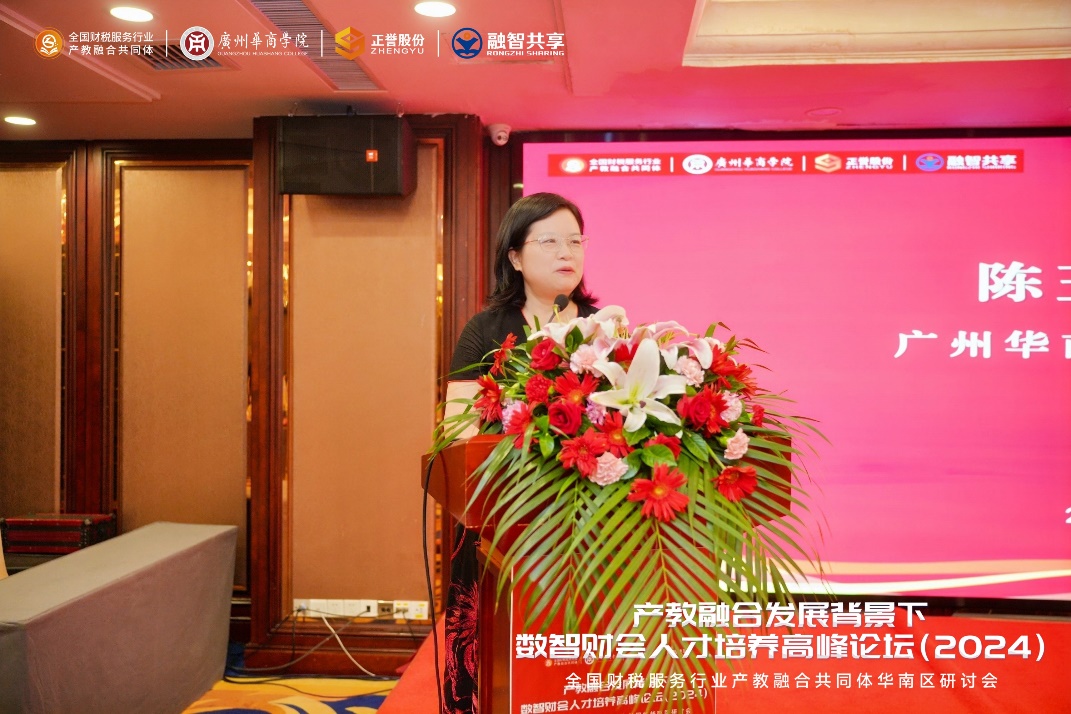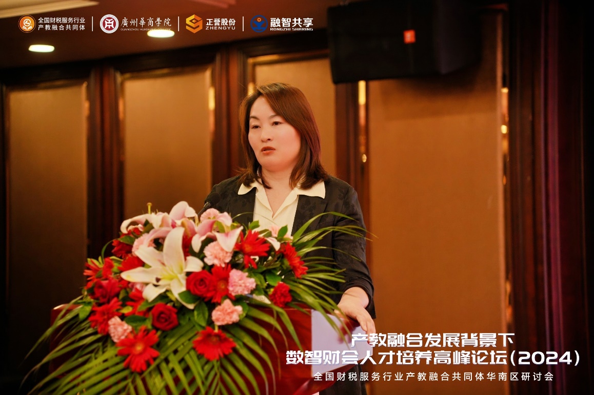 鲁银花董事长基于实务的角度,分享了正誉股份在产教融合方面的实践经验,探索一条培养财务新人才、促进行业发展的新途径。