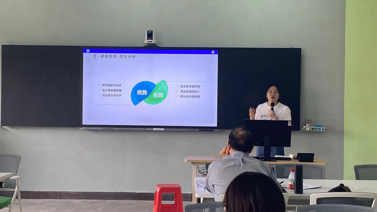 贺菲老师讲授的是《创业管理》课程中的“创业机会管理”,贺老师首先从课程定位、教学目标、教学方法、教学过程与特色、教学评价五个方面进行说课,然后从认识创业机会、识别创业机会、评估创业机会、构建创业机会四个方面为我们开展了一次如何实现“大众创业、万众创新”的创业课堂。贺老师的课堂生动有趣,导学案例合理引入,令人印象深刻,使人创业兴趣盎然。