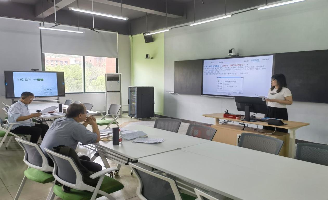胡曼曼老师讲授的是《会计信息系统》,胡老师首先从教学设计、教学分析、教学过程和教学反思四个方面进行说课,其次选取课程中的“薪资管理系统”模块进行授课。胡老师从理论知识讲解逐步过渡到实训操作演示,并细心介绍了模拟企业薪资管理的系统操作和注意事项,帮助学生理解企业薪资管理的基础设置和业务处理核心逻辑,并熟悉掌握薪资管理业务操作流程,为学生未来的职业实践奠定坚实基础。胡老师的讲解细致到位,重难点突出,分组设计以及线上线下的混合式教学运用得当,使课堂更加高效生动。