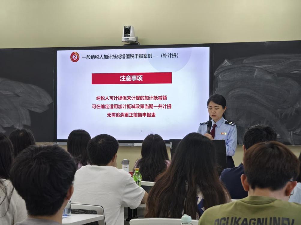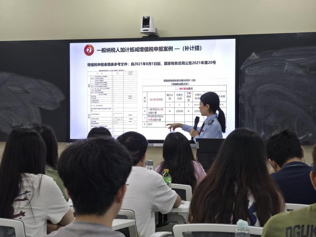 随着我国税收与教育领域的不断融合与创新,税法教育的实践意义日益凸显。2024年4月23日,一场以“税务青年宣讲团普及先进制造业增值税加计抵减政策”为主题的活动在我院成功举行。