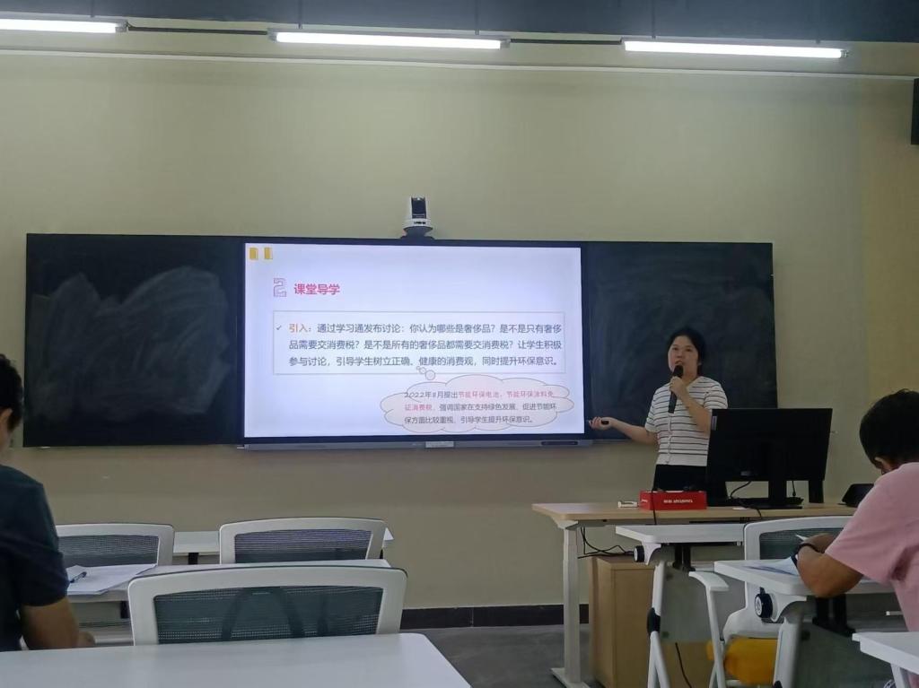 徐蓉老师讲的是中级财务会计学这门课程。在说课环节,徐蓉老师从课程总体设计、学情分析、教学内容和教学策略等几个方面进行了详细的阐述,说课过程节奏不紧不慢,条理清晰,徐蓉老师以严密的逻辑和丰富的实践经验,为我们构建了一个完整而丰富的教学框架。随后在模拟授课环节,徐蓉老师挑选了教材第三章第五节存货的期末计量这一内容进行讲解,以个案例进行课堂导入知识点,激发学生的学习兴趣。她以深入浅出的讲解方式,将复杂的会计准则化为简单易懂的语言,让大家在轻松愉快的氛围中掌握了核心知识点。习题的适时穿插,加速了学生对知识的吸收与理解,有效促进了知识的巩固与迁移。最后还对于本次授课内容做了复习回顾,启发和引导学生的课后思考。