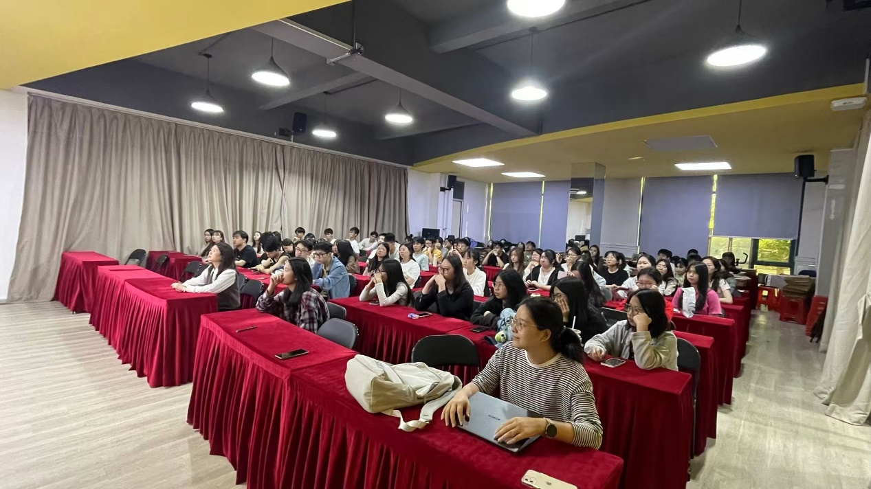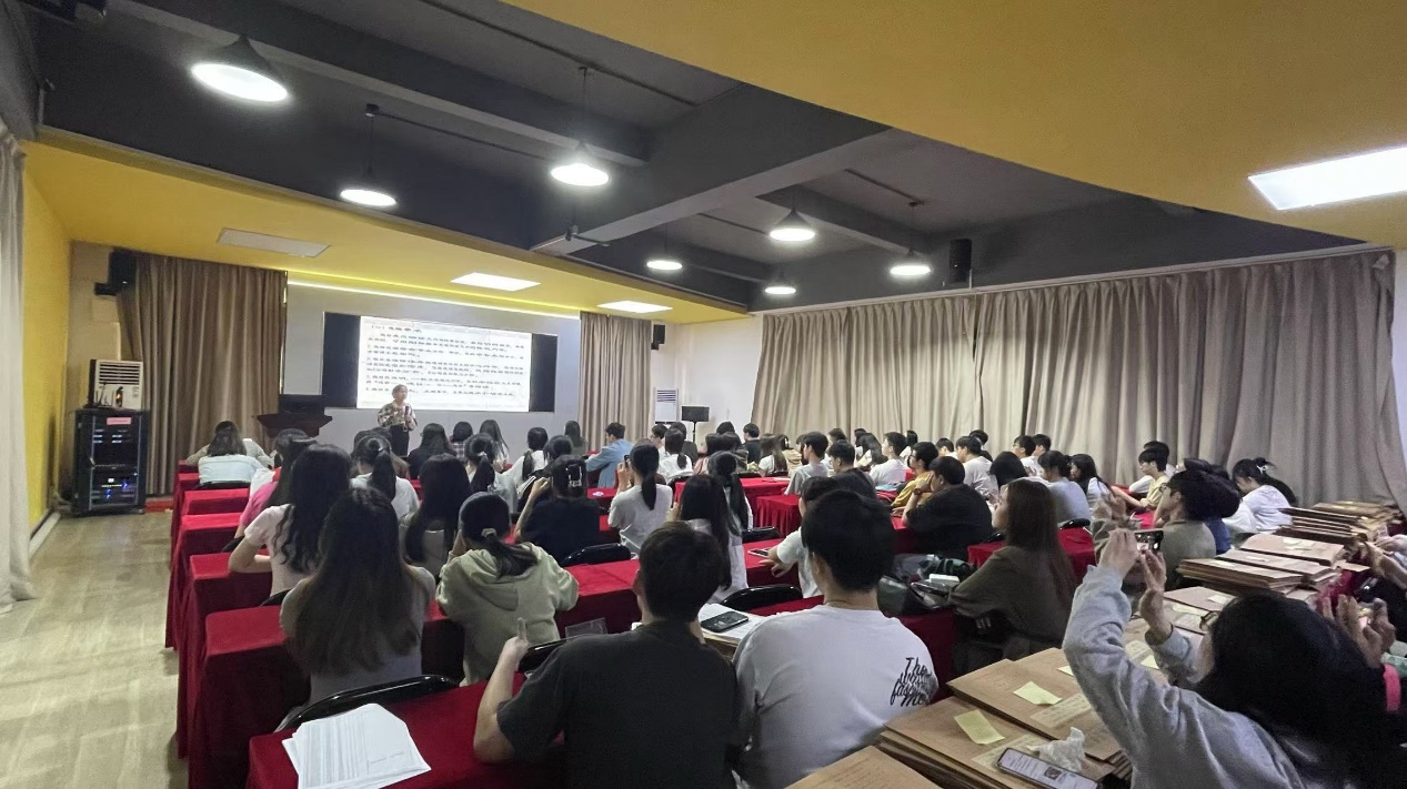 讲座现场气氛热烈,学生们不仅认真听讲,还积极参与互动环节。杨旻教授详细讲解了从开题报告、研究内容、文献综述,到大纲架构、格式规范等方面的写作技巧,为同学们指明了论文写作的方向。
