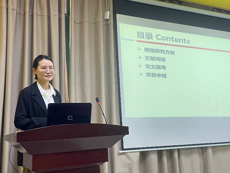 接着,由张含笑老师进行经验分享交流。张含笑老师作为会计系新秀,小荷已露尖尖角,在科研上已有自己的见解。她主要从论文研究方向、文献阅读、论文撰写、项目申报四方面进行了详细的分享。张含笑老师无保留地从自己在科研之路是如何摸索研究方向、如何用便利的知网资源快速地搜索到有用的文献、如何进行文献阅读、如何构造一篇论文的写作顺序和框架结构等方面娓娓道来。最后呼吁年轻教师要敢于尝试项目申报、善于使用图表分析、不断锻炼写作表达能力。