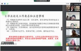 其次,关于毕业论文,张丽副主任重申了“指导老师是论文第一责任老师”的原则以及毕业论文对我校本科教学工作合格评估的重要性,再次明确了指导老师的职责,对全系老师的毕业论文指导工作的过程规范性提出了严格的要求,以确保毕业论文指导工作能保质保量地完成。