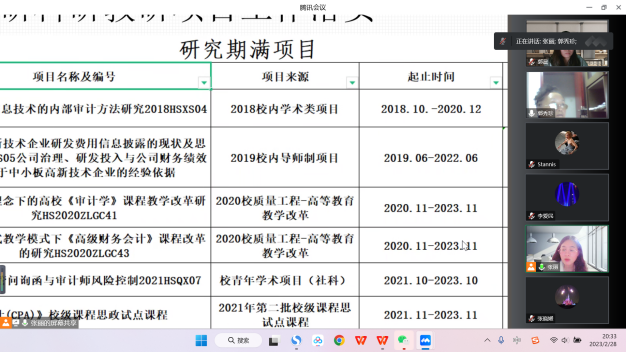 本次会议中,审计系主任郭秀珍与副主任张丽先对审计系在研的教科研项目进行了梳理汇总,让全系教师深入了解了系部未来的教学科研工作方面的思路和部署,并对各个在研项目的人员分工做出了安排。两位主任鼓励青年教师在老教师的指导下踊跃申报、参与各类教科研项目,进一步提高自身教学科研水平,同时促进学校教科研工作再上新台阶。