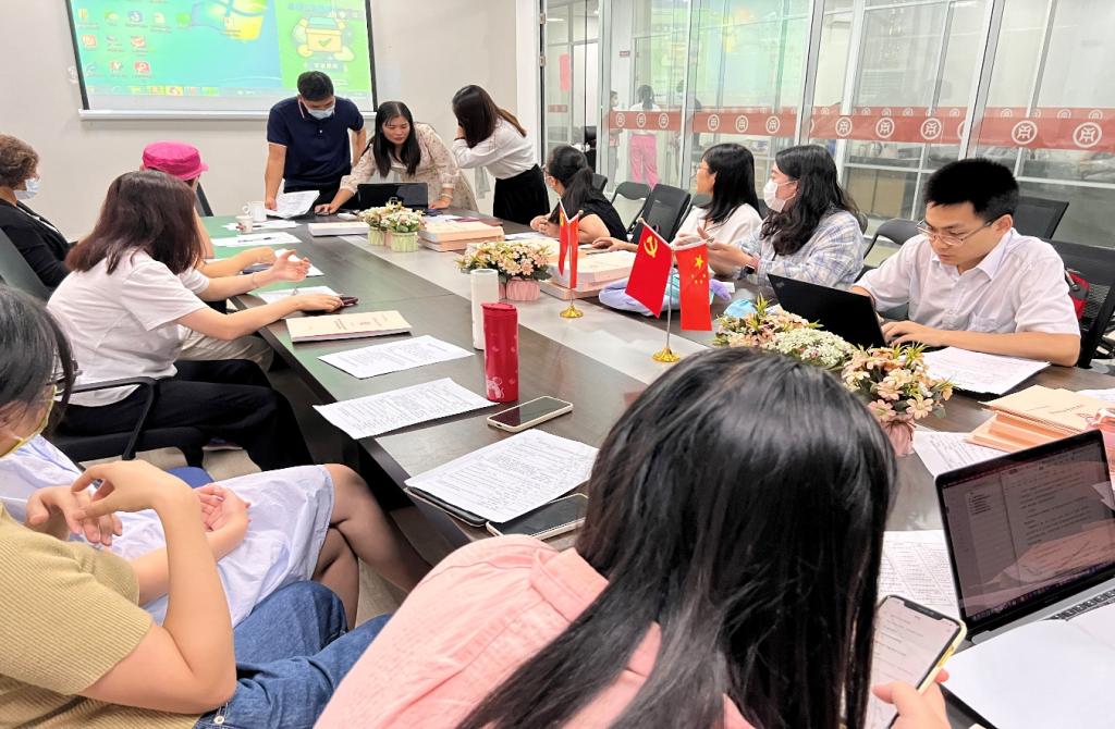 会议伊始,陈美华副校长对税收学评估工作进行再动员再部署,他代表学院对各位老师在材料的收集、整理、写作过程中所做出的努力给予了肯定。紧接着张翠凤教授对近期工作任务进行安排,她表示通过各位老师的努力,评估材料已初步成形,希望大家继续努力,在前期基础上完善修改,重点突出特色亮点,争取在10月底前完成评估材料。随后李志凤与宋超老师传达学校支撑材料收集整理及归档要求,具体就专业定位与方案、师资队伍、课堂教学与课程建设、教学条件与利用等等明确收集整理要求。焦熙、张嘉明、田婧与郭坤锟老师分别代表4个工作组介绍了目前材料整理和写作情况,并提出整理和写作过程中存在的问题。杨旻副院长带领与会教师对相关版块存在的相关问题进行了深入讨论,并就当前各部分存在的问题进行了梳理,明确了下一步完善和修改的路径。