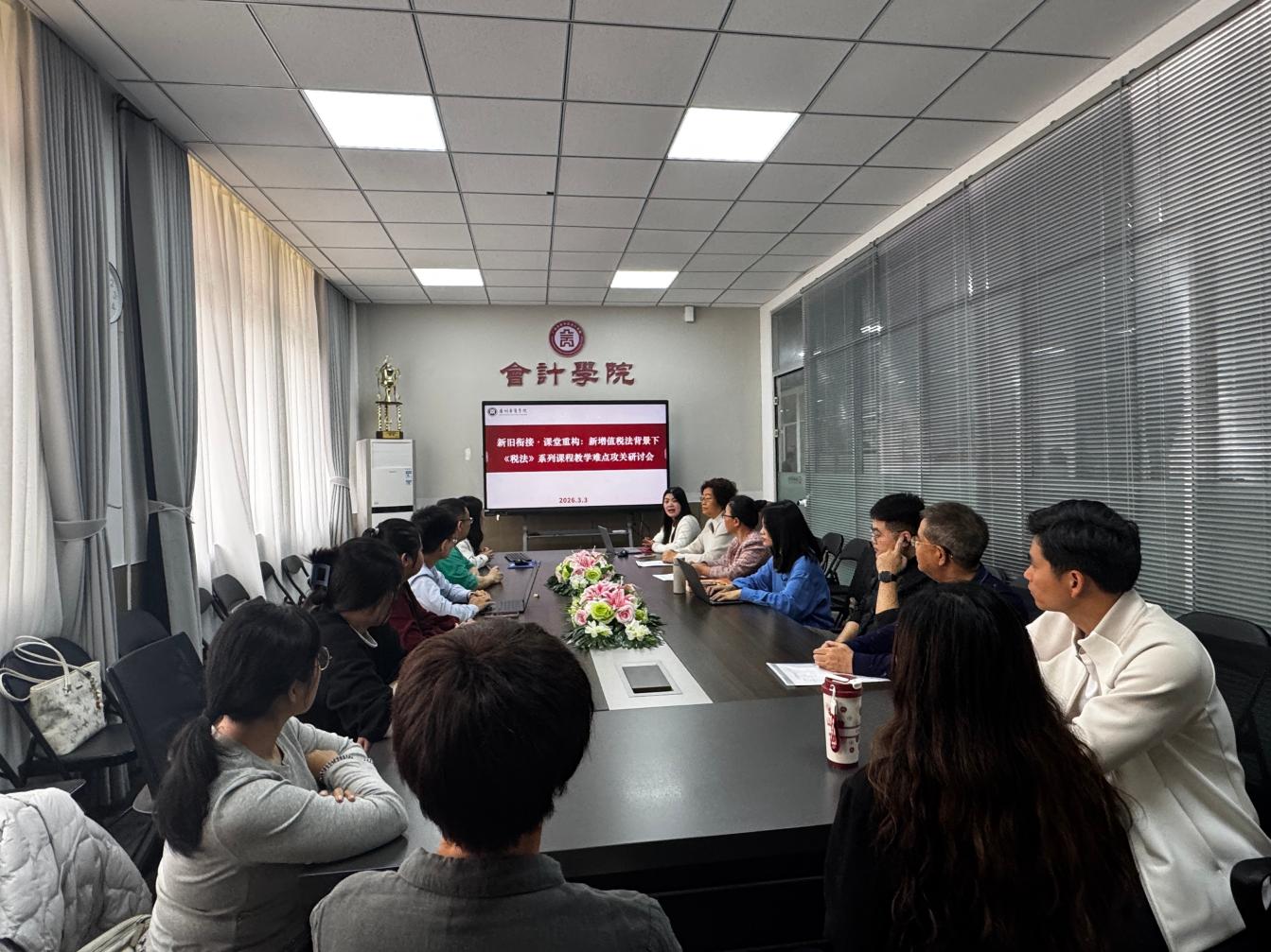 为精准把握新增值税法实施条例核心变动,破解《税法》系列课程教学难点,统一课程内容更新思路,3月3日15:00-17:00,bv伟德国际1946税务系在学院会议室召开新增值税法背景下“新旧衔接课堂重构”税法课程教学难点专题研讨会,税务系全体教师参会,围绕教学实际深入研讨、凝聚共识。