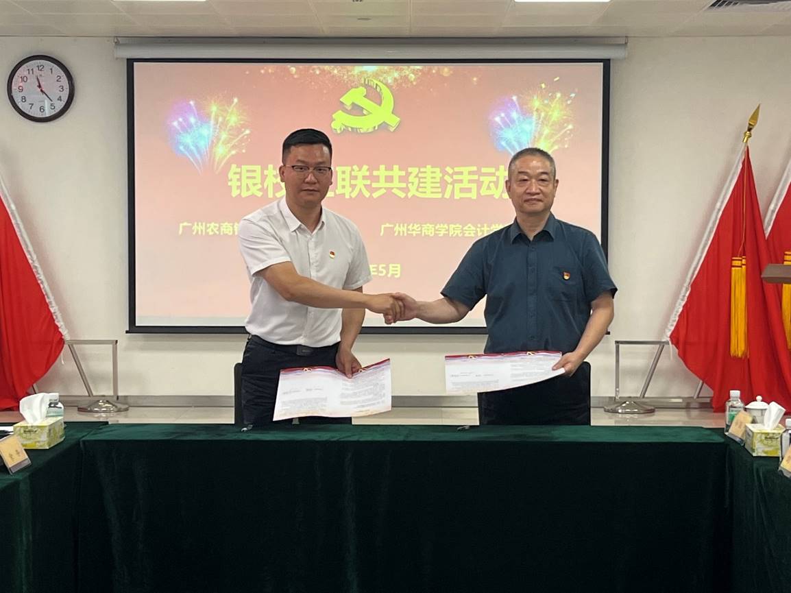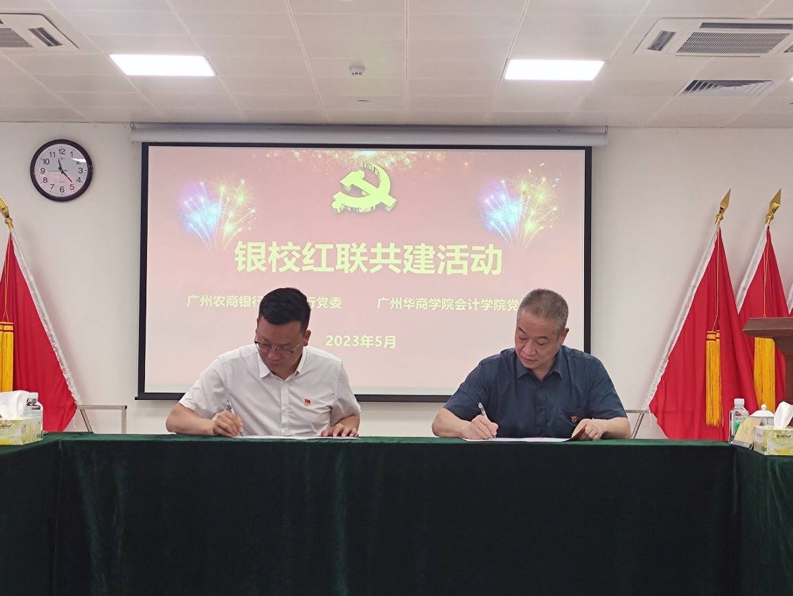 2023年5月26日,bv伟德国际1946党委和广州农商银行增城支行(简称“农商行增城支行”)党委在合汇广场增城农商行总部进行红联共建主题活动及签约仪式。本次活动是根据学习贯彻习近平新时代中国特色社会主义思想主题教育的要求,结合共建双方实际,实现资源共享、优势互补、互助共建,促进党建与业务发展“同频共振”,开展“校银携手,合作共赢”为主题的红联共建工作。广州农商银行增城支行党委副书记纪委书记赵明、党委委员兼行长助理谢超颖、党委委员兼零售业务部经理田春雷,bv伟德国际1946党委副书记陈洋广、党委委员兼副院长周书域、学院学工副主任兼党支部书记杨烨瀚等领导出席活动。农商行增城支行部门经理、员工党员代表,bv伟德国际1946部分党支部书记、20名学生党员代表共同参加本次活动。