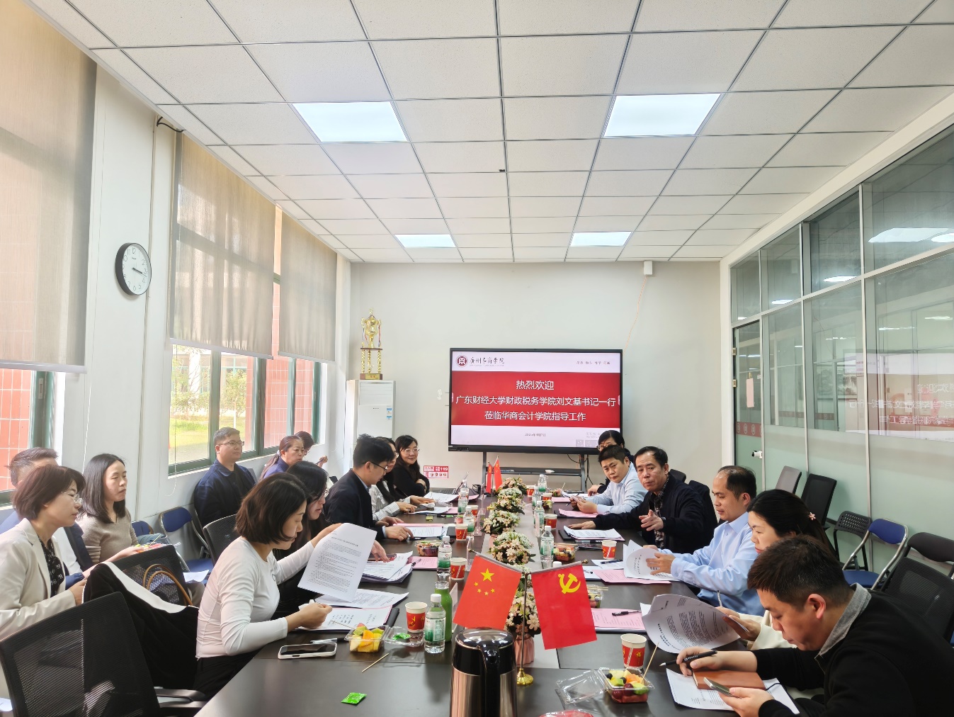 2025年4月3日下午15:30,bv伟德国际1946与广东财经大学财政税务学院财政系党支部、税务系党支部在bv伟德国际1946会议室开展联合党日活动。广东财经大学财政税务学院党委书记刘文基一行12人、bv伟德国际1946院长姚凤民等全院班子成员参加活动,活动由姚凤民院长主持。本次活动通过加强双方院系的党建交流与合作,共同推动财税专业建设及人才培养。