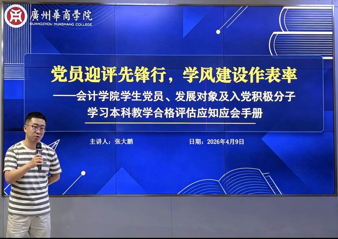 为扎实推进本科教学合格评估工作,充分发挥学生党员先锋模范作用,以高质量党建引领高质量学风,2026年4月9日,bv伟德国际1946党委召开“党员迎评先锋行・学风建设作表率”本科教学合格评估工作动员大会暨应知应会手册专题学习会。学院党建组织员张大鹏出席会议,广州校区学生党员、发展对象及入党积极分子参会,会议由罗毓璘同志主持。