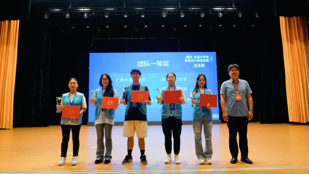 比赛中,我院代表队在审计职业素养和实务操作两大部分均表现出色,分别获得255.64分和393.09分,最终以总分排名全国第六,荣获一等奖。