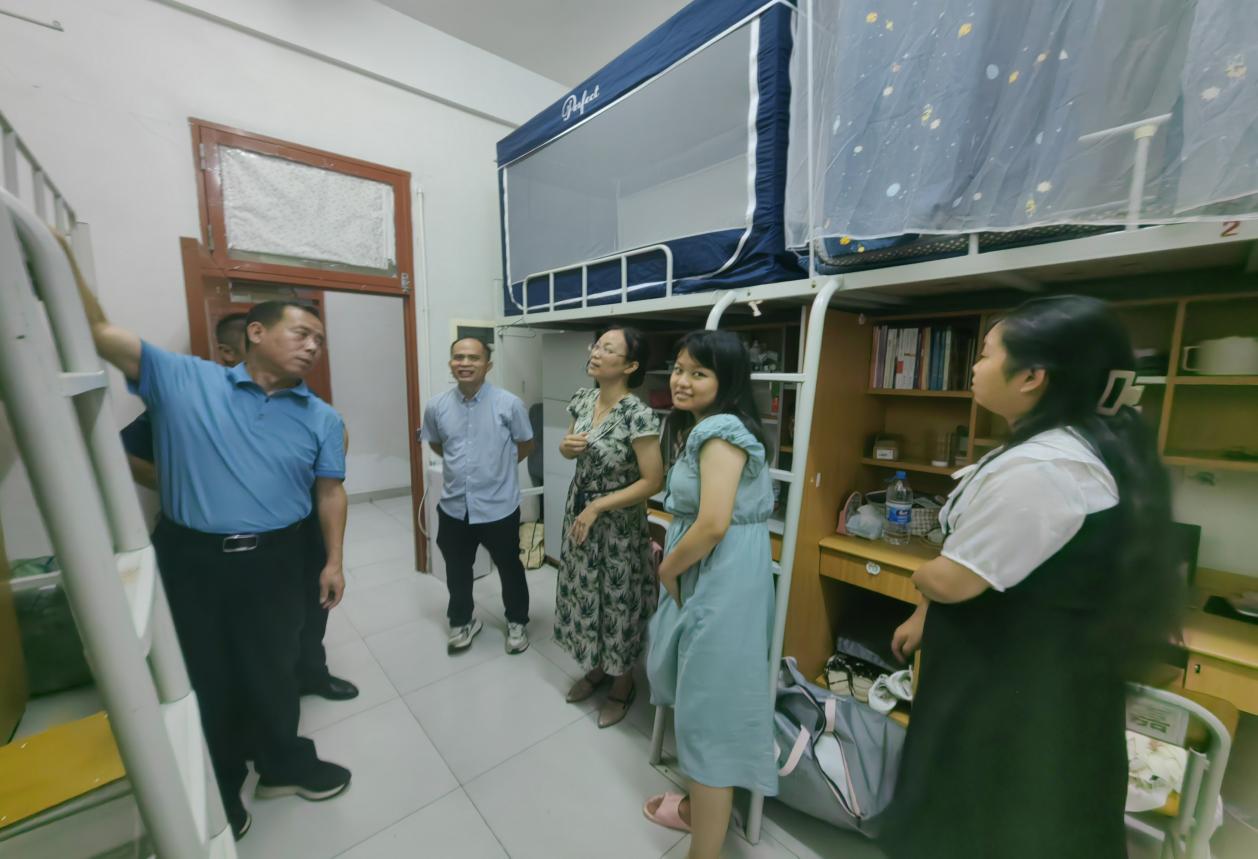 此次走访,不仅是一次对宿舍设施的全面检查,更是一次与学生心贴心的沟通之旅。姚凤民院长一行深入学生生活一线,细致入微地询问了学生的学习与生活状况,倾听了学生和家长对宿舍环境、学习氛围及生活服务的反馈与建议,对学生们提出的每一点疑问和需求,均给予了细致的解答与积极的回应,展现了学校对学生成长的全方位关怀。