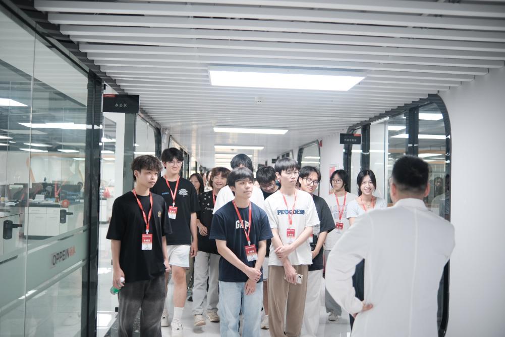 抵达后,同学们首先通过产业基地沙盘对整体布局有了初步认识。在国家级实验中心,大家亲身体验实践研发新科技,感受创新魅力;AI 全自动柔性生产工厂更是令人大开眼界,智能物流立体仓与生产实时数字看板展示出数智化生产的高效精准。