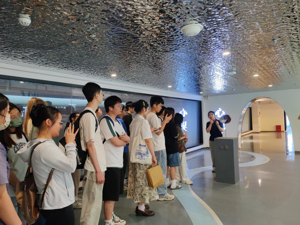 在讲解员带领下,师生们穿越顶固文化长廊,从2002年首款五金锁具的匠心打磨,到2018年深交所上市的高光时刻,再到2025年“竹香板4.0”环保技术的行业突破,每一块展板都诉说着顶固“以创新破局”的成长逻辑。当看到企业创始人林新达先生“顶中国企业之脊梁”的题词时,同学们深切感受到民营企业家的家国情怀。