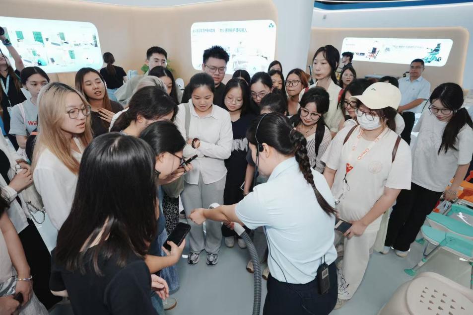 走出十如,同学们参访了专注AI智慧养老领域的创新标杆企业——作为科技有限公司。此行让同学们大开眼界: 在展厅和演示区,同学们亲眼目睹并亲身体验了作为科技先进的智能化产品。从能提供安全、舒适助浴服务的智能机器人,到辅助行动不便人群轻松转移、行走的智能辅具,再到集成化的智慧养老平台系统,科技的力量让“老有所养、老有尊严”变得触手可及。