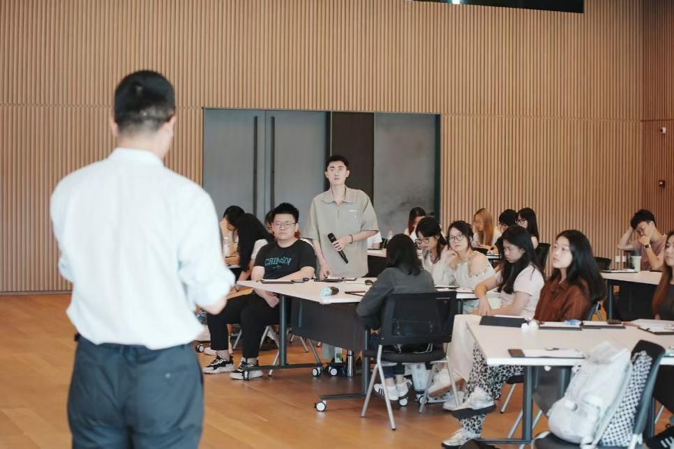 经历了十如园林的视觉与理念冲击,在林丹曼和李佩瑚老师的引导下,同学们不仅畅谈了直观感受,更开始深入探讨ESG理念与绿色制造业的内在联系。老师们适时对核心概念进行点拨与梳理,将感性认知引向理性思考,为第二天深入理解溢达的可持续发展战略奠定了坚实的基础。