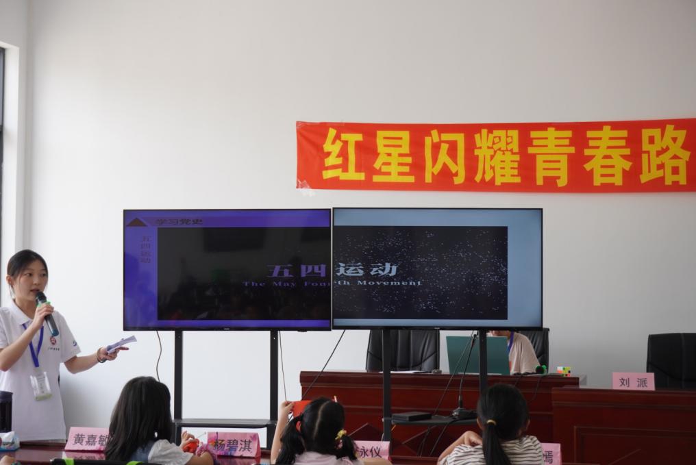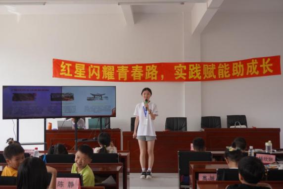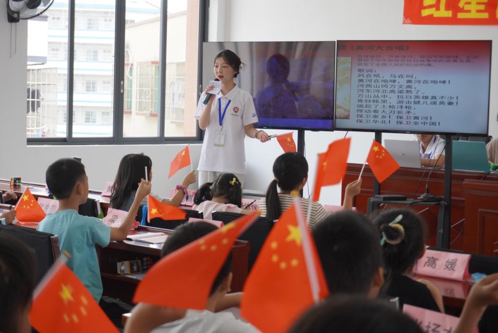 红歌是时代的号角,《黄河大合唱》的激昂旋律一响起,仿佛能看见黄河浪涛里的抗争;《红星闪闪》的明快节奏中,红星的光芒点亮了温润的眼睛。小朋友们在实践团成员的引领下,小手挥舞着红旗,伴着旋律缓缓吟唱,他们从“风在吼,马在叫”中领悟到坚韧不拔的精神,在“红星熠熠生辉”里升起未来的希望。