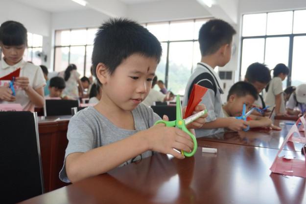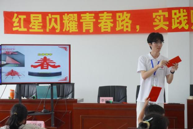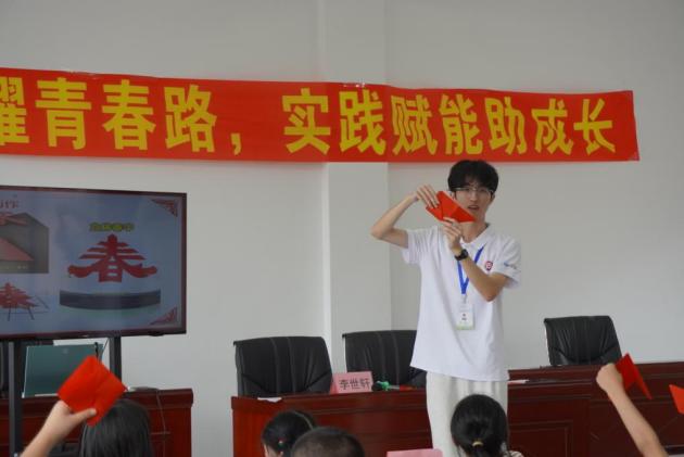 对折里的希望萌芽“春”,是万物生长,也是红色精神的蓬勃。窗花里的红星是纹路间的信仰模样。实践团成员举起一张立体“春”字剪纸,红纸层层叠叠,展开时像一朵绽放的花。“小朋友们拿起红纸,跟着示范一步步折叠,先将正方形纸对角折成三角形,再沿着虚线画出‘春’字的轮廓”。剪刀在指尖轻轻游走。当一个个立体“春”字在桌上“站”起来,当窗花里的红星红得发亮,红纸间的每一个图案都成了红色精神的注脚。