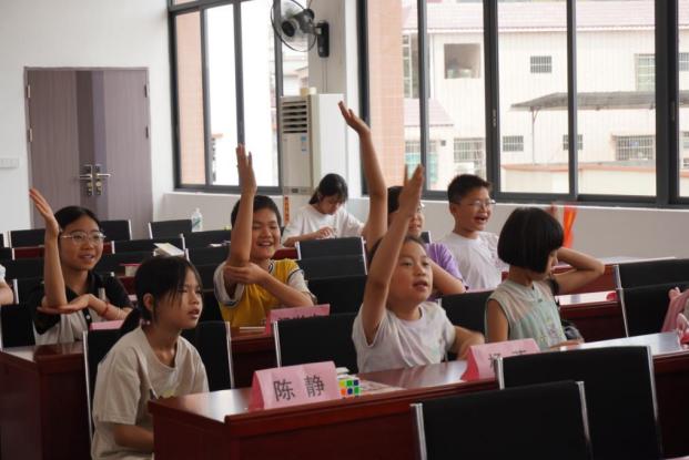 上午的课程将近尾声,一场热闹的红史问答紧接着拉开序幕,成了红色知识的欢乐派对。在必答题环节,小朋友们沉着应答;到抢答题部分时,更是小手齐举,争相答题;做到风险问答时,则见各小队成员集思广益,携手合作,共同奋进。从一开始的广宁的红色文脉有哪些,到详细的百寮顶战斗的具体故事细节;从《红星闪闪》的诞生条件,再到五四运动的深远影响,孩子们的作答都又快又准。大家眼中的光,皆如红星闪耀!
