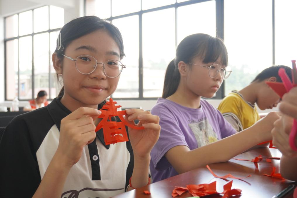 剪纸,这项源于民间的传统手工艺,是中华优秀传统文化的璀璨明珠,它以剪刀为笔、红纸为墨,通过镂空、折叠等精巧技法,将生活百态、精神信仰凝练于方寸之间,历经千年传承而生生不息。当非遗的巧思撞上红色的热忱,便在小朋友们的指尖开出了传承的花。今天的红色剪纸课堂,不只是剪刀游走的艺术,更是让红色基因顺着纹路,悄悄刻进心里的旅程。