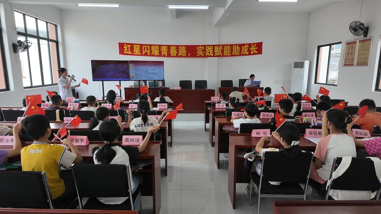 传承红色基因、赓续红色血脉,是新时代党赋予教育工作者的重要使命与责任担当。7月14日,bv伟德国际1946“扬帆起航,筑梦成长”青年实践团于肇庆市广宁县南街街道红星社区开展了一系列红色主题教育活动。通过红歌传唱、画说党史、红色之旅、知识问答、传统剪纸,将红色文化以生动活泼的方式传递给青少年,让红色基因在欢声笑语与青春热血中薪火相传,深深浸润着少年儿童的心田,滋养着他们的精神世界。