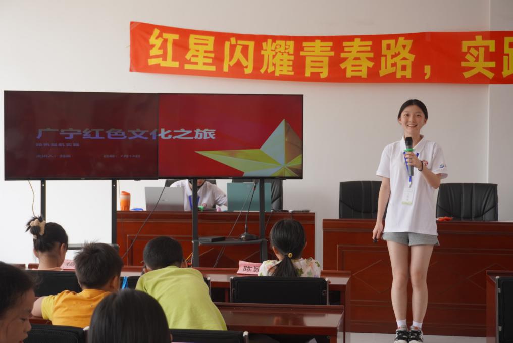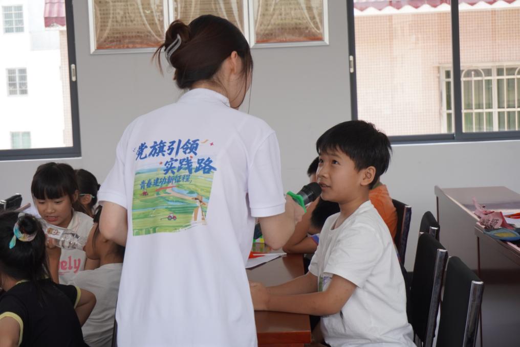 就像画笔能勾勒遥远的峥嵘,身边的土地也藏着触手可及的红色记忆。实践团成员给小朋友讲述着广宁的红史:广宁的红,藏在农运烈火里——1924年的减租斗争轰轰烈烈,1928年的苏维埃政府红旗飘扬;藏在抗战烽火中——百寮顶伏击战智勇双全,扶罗口的枪声里藏着不屈;更藏在如今的江美村,红色旅游与稻田相映,成了最鲜活的“教科书”。