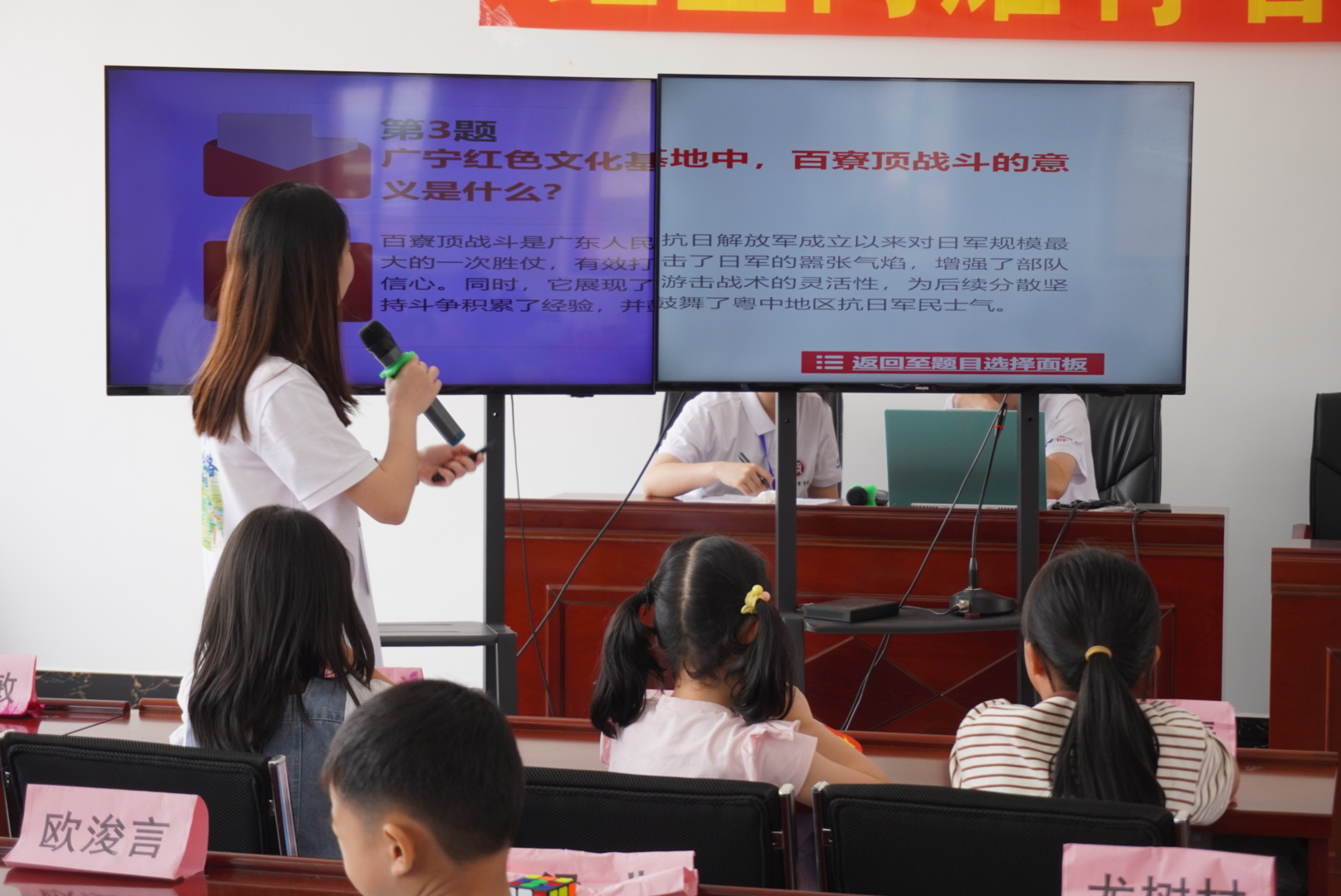 红歌传唱的激昂旋律中,孩子们从《黄河大合唱》里听见民族不屈的呐喊,在《红星闪闪》的明快节奏中触摸信仰的温度;“画说党史”环节,通过飞夺泸定桥、五四运动的画作讨论,领悟革命先辈的坚定意志;广宁红色之旅中,孩子们走进家乡的红色记忆,从农运烽火到抗战故事,深知英雄曾在这片土地奋斗;红史问答间,从广宁红色文脉到全国革命历程,孩子们的热情澎湃见证红色基因如春雨般渗入心田;红色剪纸课上,“春”字与红星窗花在指尖成形,让红色基因随纹路刻入心间。