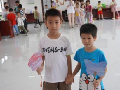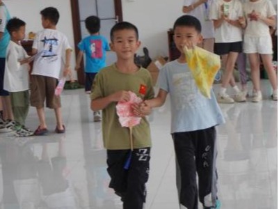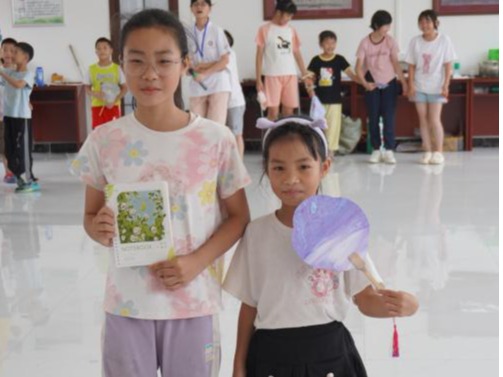 颁奖过后,一场“创意T台秀”迅速点燃了当天活动的气氛。小营员们一个个化身成“小小设计师”自信走上“舞台”:有的捧着扎染课程中亲手染制的蓝白布艺,灵动的纹样随步伐轻轻晃动;有的举着漆扇课程绘制的花鸟图案,扇面开合间尽是传统美学的韵味;还有的展示着“乡韵课堂”里绘制的家乡海报,五彩斑斓的画笔勾勒出对故土的热爱;五谷杂粮粘贴的艺术画、毛笔书写的工整字迹也一一亮相,每一件作品都凝聚着孩子们的巧思与汗水。他们迈着略显稚嫩却格外坚定的步伐,用童真与创意,将七天的学习成果化作最动人的展示,赢得了在场所有人的热烈掌声。