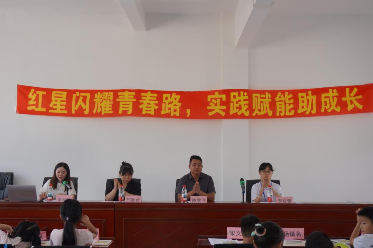 7月16日上午,结营仪式在社区党总支委员梁秋媚的主持下拉开帷幕。参与本次结营仪式的还有广宁县南街街道党工委委员陈学飞、红星社区党总支部委员兼妇女主任邱敏贞、学生家长、实践团全体成员以及参加活动的小朋友们。社区党总支委员梁秋媚首先对本次结营的主题与流程进行了概述,并向到场的所有人表示了热烈的欢迎,至此,正式拉开了这场“成果盛宴”的序幕。