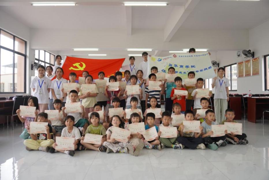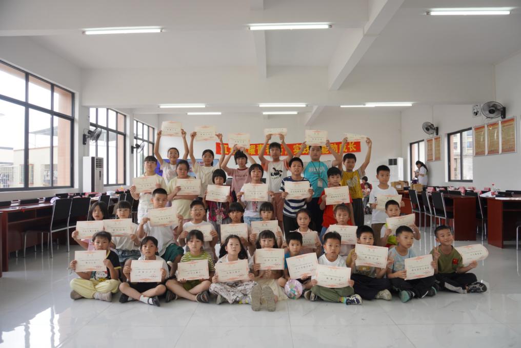 活动的尾声,实践团大学生党员们与孩子们紧紧依偎着,共同在镜头前留下了满载欢声笑语的温馨合影。这一刻的定格,不仅记录了盛夏的温暖邂逅,更凝聚了本次实践活动丰富的内涵——从红色课堂的初心传承到非遗课程的文化浸润,从团队协作的默契培养到创意实践的火花迸发,七天里的每一堂课、每一次互动、每一个笑容,恰似一连串熠熠生辉的珍珠,将实践团的辛勤付出与孩子们的成长收获编织成章,既彰显了教学相长的丰盈成果,也映射了初心在实践中生根发芽的生动景象。