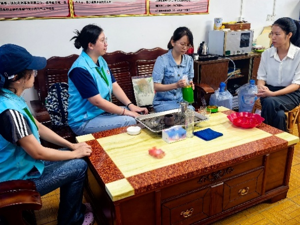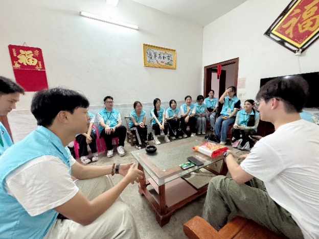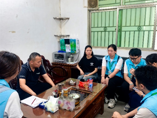 7月11日上午,实践队与砂塘村村委会召开研讨会。蓝塘镇党委组织委员、团委书记邓柳花,蓝塘镇团委工作人员钟文文及实践队队员参加座谈。