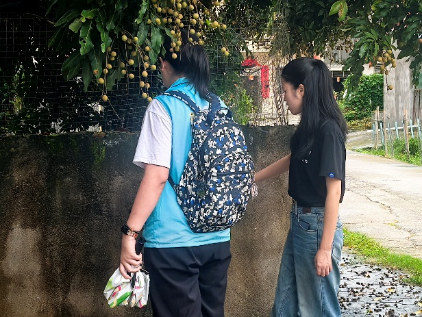 当日,蓝塘镇党委组织委员、团委书记邓柳花携镇团委工作人员钟文文专程来到砂塘村,对"账"量青春实践队的变电箱美化工作进行现场指导。邓书记结合当地实际情况提出了宝贵建议:"变电箱美化不仅要注重艺术性,更要突出实用性。建议在设计时考虑当地多雨的气候特点,选用防水耐用的环保涂料。"