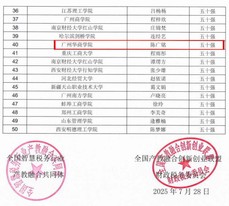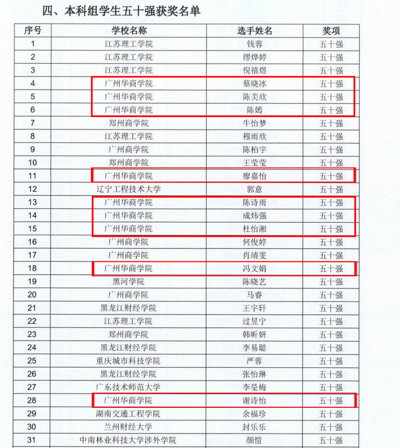 在个人赛中,我校10名学子脱颖而出,成功入选全国50强,他们分别是下表中标记的学生。