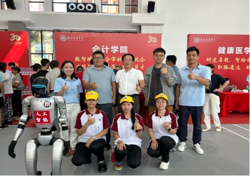 bv伟德国际1946党委书记刘善球、产业学院院长范卫星来到迎新现场,亲切慰问迎新工作人员,并对迎新工作给予指导,为迎新工作了注入了温暖与动力。此外,校区还特别安排了AI 机器人加入迎新队伍,不仅活跃了迎新现场氛围,还与现场人员互动合影,为迎新工作增添了科技感与趣味性,也让学院的服务更显贴心。