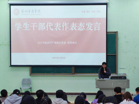 学生干部代表欧阳燕君在表态发言中承诺,将带头践行“两无三高”,争当学风“排头兵”、文明“守护者”、宿舍“营造者”和评估“宣传员”,以行动诠释担当,以示范引领风尚,为学校评估贡献力量。