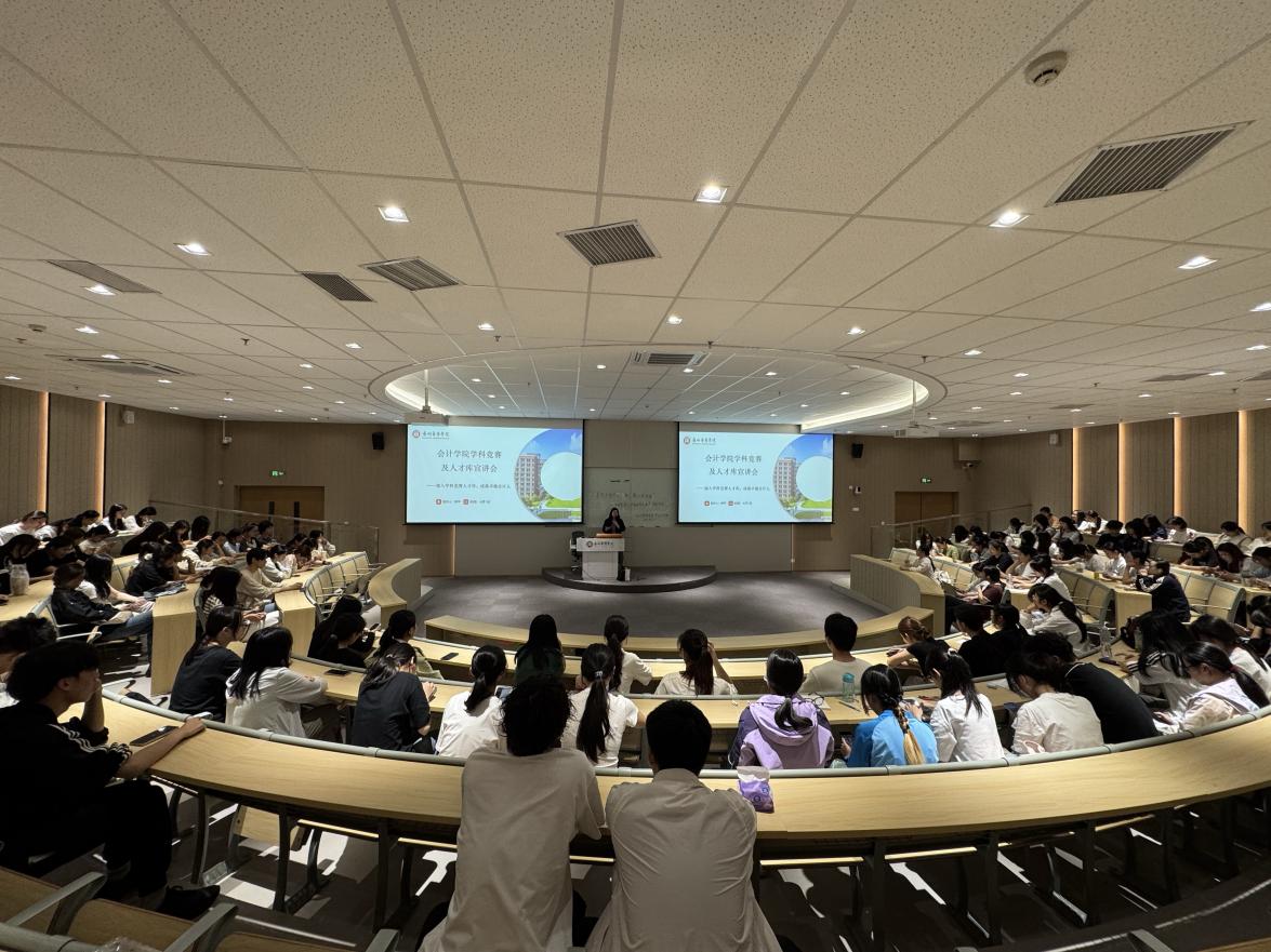 随后,陈平副教授公布了会计系、税务系、审计系、财务系四大专业方向的部分学科竞赛名单,包含全国高校商业精英挑战赛-会计与商业管理案例竞赛、全国本科院校税收风险管控案例大赛、全国大学生智能审计技能竞赛、“网中网杯”大学生财务决策大赛等多项国家级高水平赛事。她详细解读各赛事的专业适配领域与核心能力要求,引导学生结合专业特长与职业发展规划选择参赛方向。